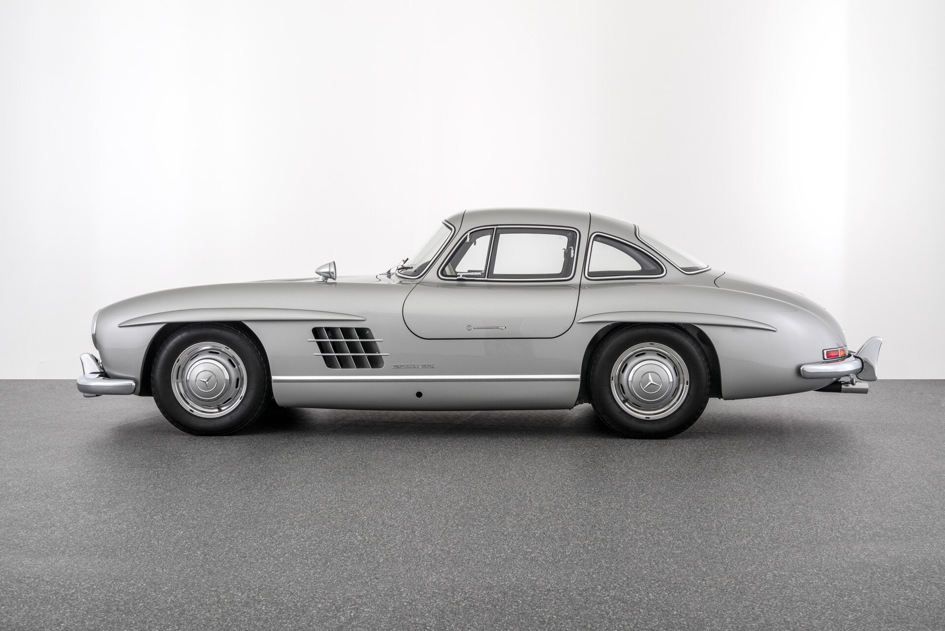 Der außergewöhnliche Flügeltürer ist aus jedem Blickwinkel perfekt. Der Rahmen wird originalgetreu mit Nitro lackiert und wie im Mercedes Werk teilweise mit einem Scheuerschutz umwickelt. Alle Unterbodenverkleidungen und das Innere der Radhäuser werden im Originalfarbton lackiert. Selbst die in der Regel am Originalfahrzeug nicht mehr existente aerodynamische Unterbodenverkleidung wird nach Originalvorlagen neu angefertigt. Alles wird gewissenhaft und gründlich in Neuzustand versetzt, eine Komplett-Versiegelung sorgt abschließend für optimalen Schutz. Auf Wunsch wird der Unterboden auch gewachst. Das Resultat ist perfekt – für die Straße oder für Ihren ganz persönlichen Lieblingsplatz.