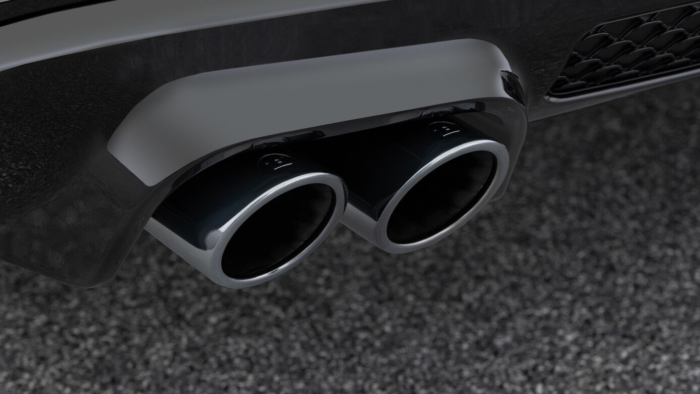Bitte beachten Sie: Nur für Fahrzeuge mit durchströmenden Serien-Endrohren. Die Endrohrblenden sind nur in Verbindung mit dem BRABUS Heckschürzeneinsatz montierbar.