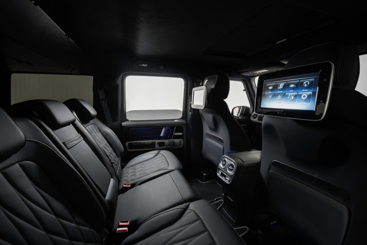 The valve-controlled BRABUS stainless steel high-performance exhaust system provides an extraordinary soundscape, underscored by an extra touch of hallmark BRABUS styling set by full carbon tailpipe trims and integrated BRABUS Rocket Launch ambience light. Beyond its unique design, the system perfects the Geländewagen’s power delivery by significantly reducing exhaust backpressure. Active sound management enables the driver to alternate between an exceedingly throaty V8 sound in ‘Sport’ mode and a subtle whisper in the ‘Coming Home’ position at the push of button.