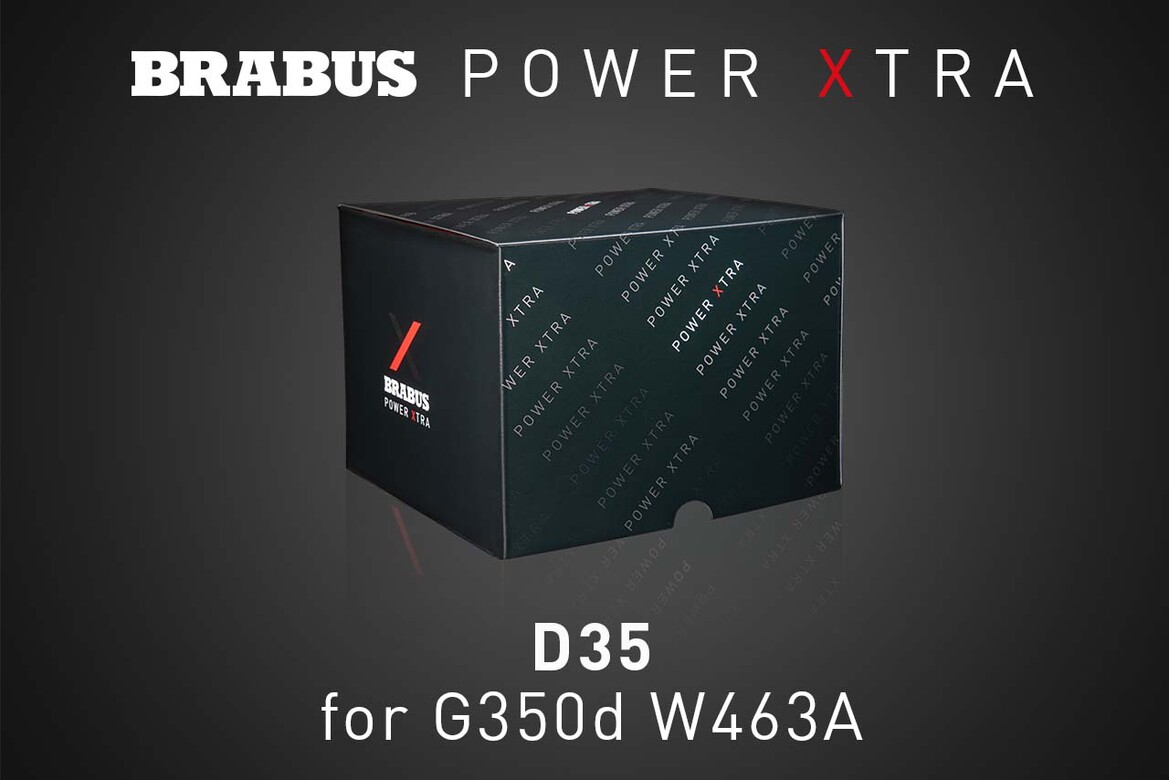 BRABUS extra power for your vehicle: The BRABUS PowerXtra D35 performance kit based on the G 350 d consists of a processor-driven auxiliary control module for the engine control unit. In addition to a bump in peak torque from 600 Nm to 660 Nm, the rated output jumps by 33 kW / 44 hp from 210 kW/286 hp to 243 kW/330 hp. The plug-and-play control unit is adapted to the standard engine management.